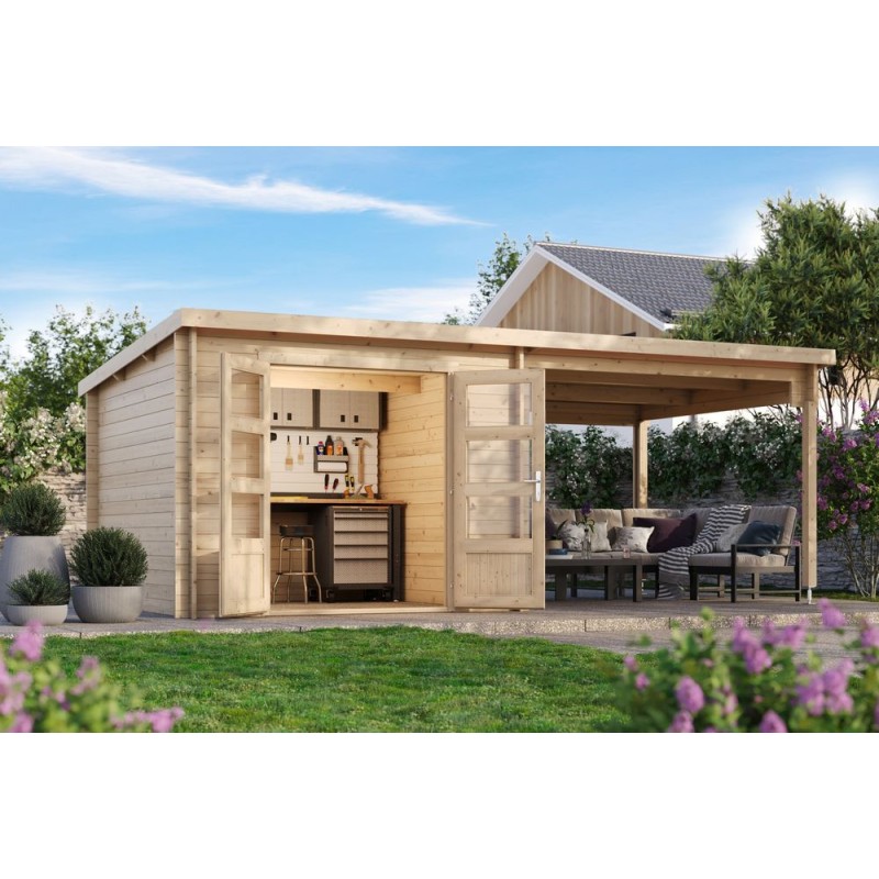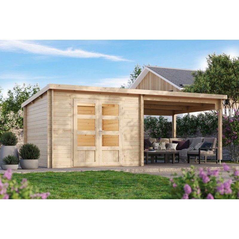 Blokhut Kessel 34 mm, 600x300 cm incl. overkapping 300 cm Blank