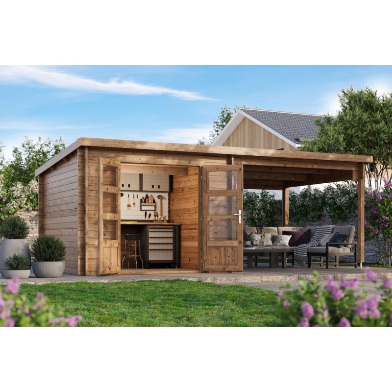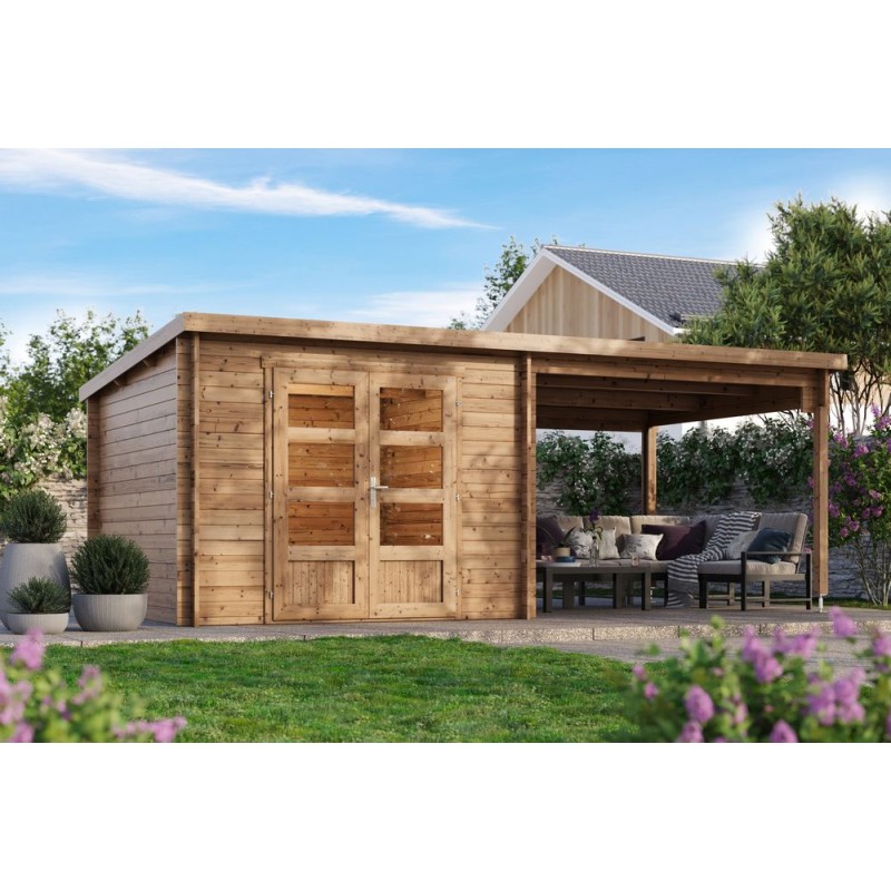 Blokhut Kessel 34 mm, 600x300 cm incl. overkapping 300 cm Bruin geïmpregneerd
