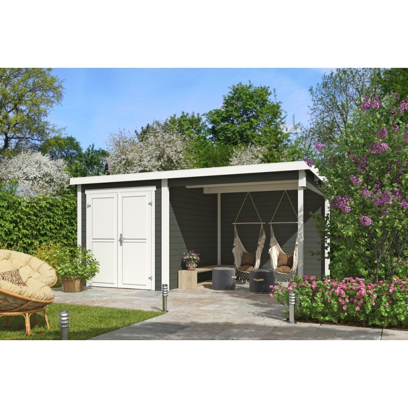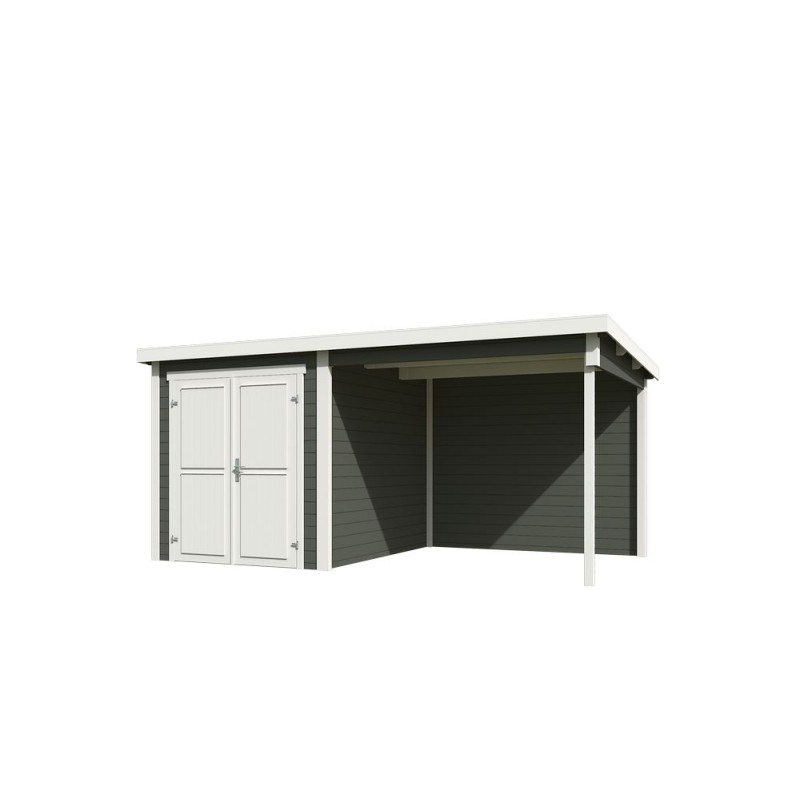 Blokhut Dahlia 1 + Overkapping 450x250 28 mm Green Grey-Wit