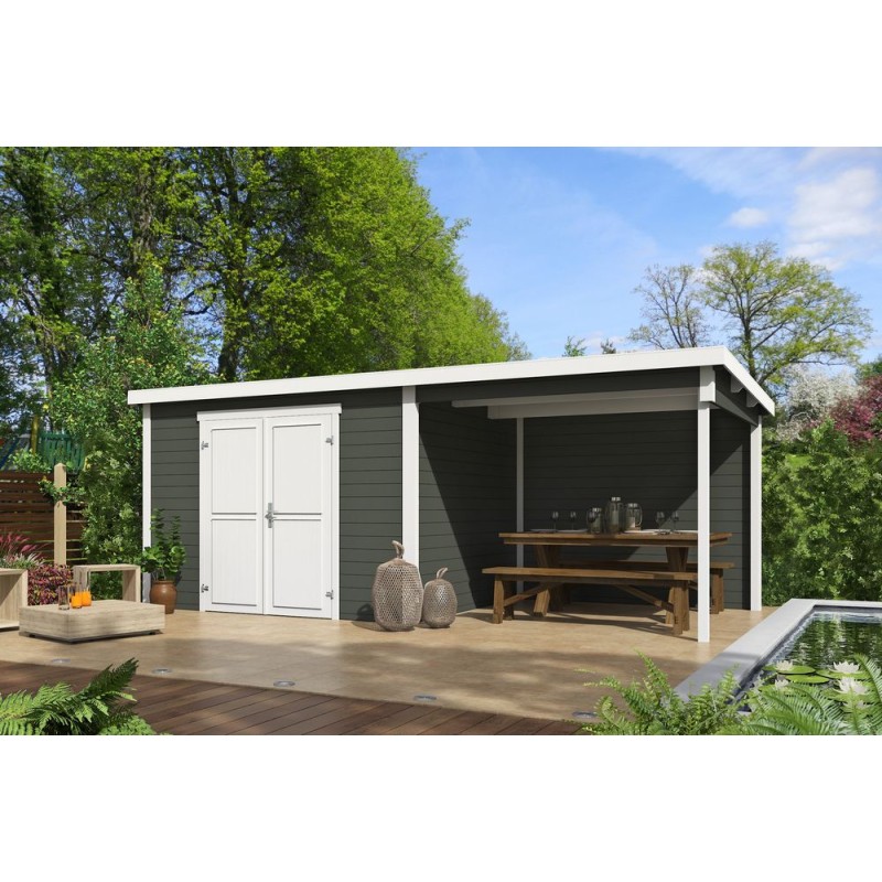 Blokhut Dahlia 3 + Overkapping 550x250 28 mm Green Grey-Wit